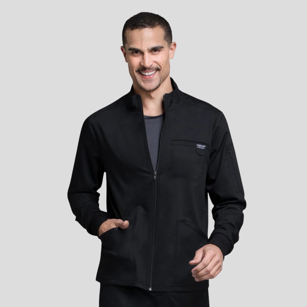 Vístase con un estilo deportivo con la casaca médica Cherokee Workwear Revolution con cremallera frontal para hombre. Este elegante estilo se combina con características esenciales para que tenga un día de trabajo cómodo. Cada estilo de la colección Cherokee Workwear Revolution redefine la idea del uniforme básico con tela elastizada mejorada y un corte clásico moderno.