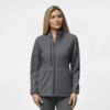 Esta casaca de microfleeca para mujeres proporciona una capa suave y acogedora para mantenerte cálido y cómodo mientras trabajas. Detalles funcionales Asegúrese de tener todo lo que necesita mientras realiza rondas. Un bolsillo de cremallera en el cofre presenta una ranura de pluma doble interior, un bolsillo de tarjeta con un cierre seguro de gancho y bucle y un anillo de llave. El diseño de cuello simulado incluye un protector de barbilla para eliminar el roce. El dobladillo de estilo camisa agrega un toque profesional, y un acabado repelente al agua lo mantiene seco todo el día.