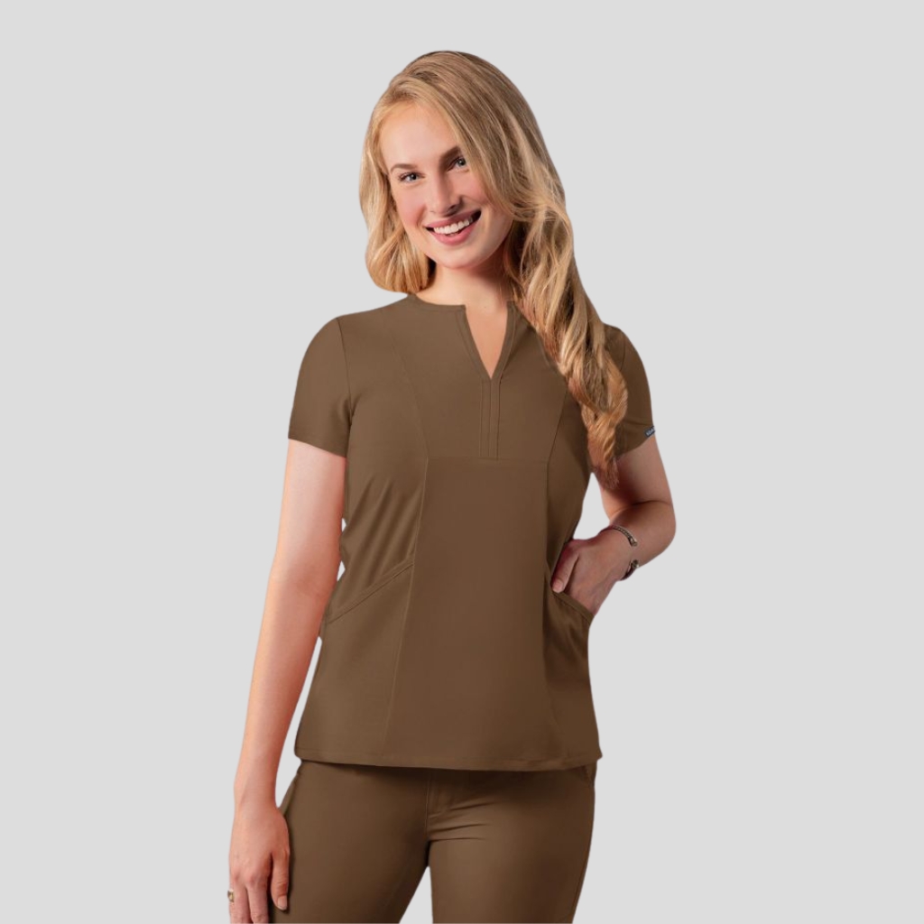 Chaqueta con cuello en V de nuestra mujer presenta un diseño elegante con muescas y un ajuste a medida con un estiramiento de 4 vías para un aspecto pulido. La tela de rendimiento elimina la humedad y es resistente al olor y arrugas para que permanezca seco en sus días más ocupados.